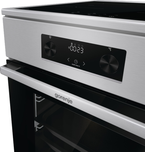 Kuchnia elektryczna Gorenje GEIT5C61XPG to połączenie zaawansowanej technologii z eleganckim designem. Dzięki indukcyjnej płycie grzewczej, przestronnemu piekarnikowi o pojemności 70 litrów oraz innowacyjnym funkcjom, takim jak GentleClose, HomeMade Plus i SilverMatte, zapewnia wygodę użytkowania i doskonałe rezultaty gotowania.