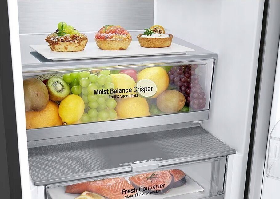 Umebluj swoją kuchnię z pomocą lodówki LG Gbv5240Dep o płaskiej konstrukcji, którą można idealnie dopasować do kuchennych mebli. Technologia DoorCooling+ zapewnia szybsze chłodzenie. Zimne powietrze jest równomiernie rozprowadzane najpierw wzdłuż drzwi, tam gdzie powietrze po otwarciu lodówki nagrzewa się najszybciej. Dzięki temu przechowywane napoje są chłodniejsze, a przechowana żywność swieża na dłużej. Nie musisz już ręcznie usuwać szronu dzięki Multi Air Flow, które zapewnia cyrkulację zimnego powietrza, przedłużając przy tym świeżość przechowywanych produktów. Kompresor Smart Inverter dostosowuje prędkość silnika w celu wydajnego chłodzenia, oszczędzając jednocześnie energię i gwarantując trwałą wydajność