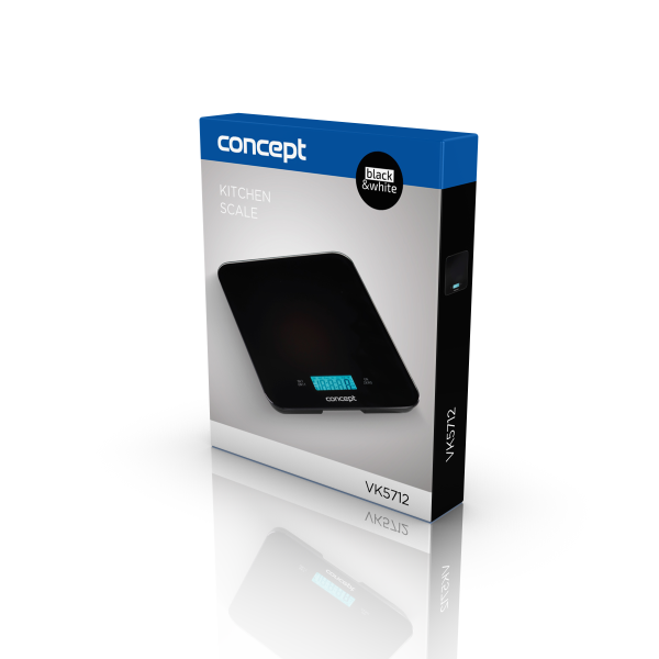 Waga kuchenna cyfrowa Concept VK5712 z linii Black to stylowe i wszechstronne urządzenie, które łączy wysoką precyzję, praktyczne funkcje i elegancki design, idealnie wpisując się w każdą nowoczesną kuchnię. Oto szczegółowy opis: